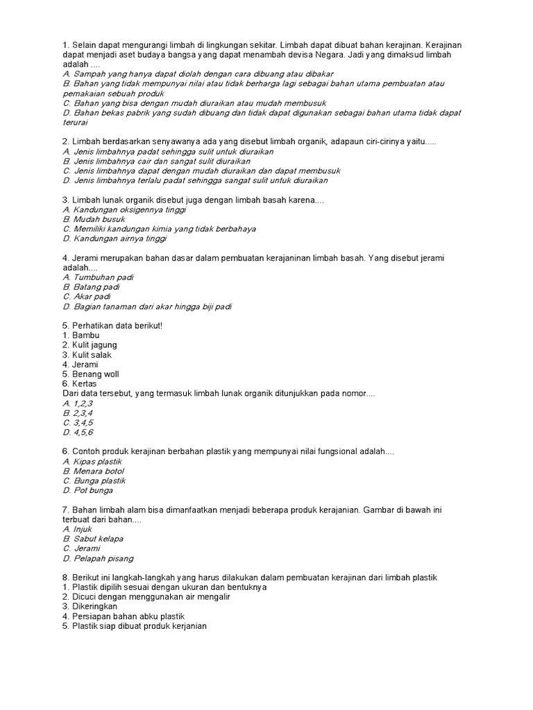 Https Pdfcoffee Com Download Bab 1 Kerajinan Limbah Lunak Pdf Free Html from Jenis limbah tersebut diantaranya adalah limbah plastik kemasan, limbah karet ban, limbah kain perca, dan limbah styrofoam.limbah tersebut termasuk dalam kategori limbah.â¦. We did not find results for: Maybe you would like to learn more about one of these? Limbah atau sampah merupakan bahan yang dibuang dari hasil aktivitas manusia maupunproses alam yang tidak memiliki manfaat. Check spelling or type a new query.