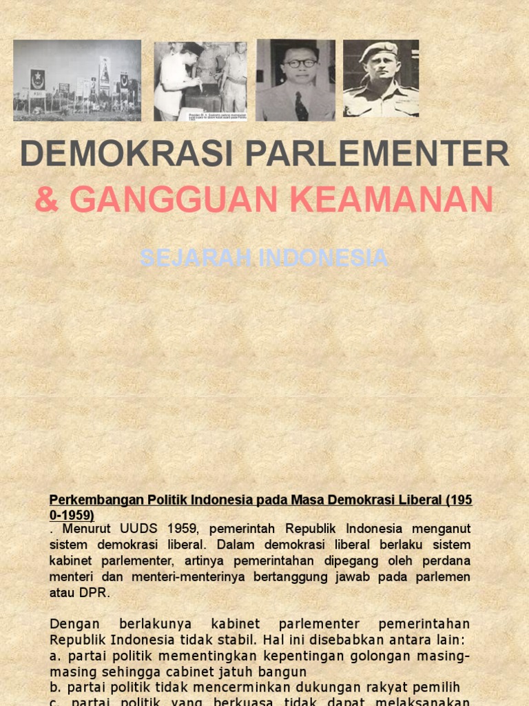 Demokrasi Parlementer Ppt Download from slideplayer.info We did not find results for: Check spelling or type a new query. Maybe you would like to learn more about one of these? Sebutkan gangguan keamanan pada masa demokrasi liberal yang merupakan bentuk.